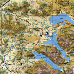 Por la parte norte, se encuentra el cordón Peñehue, que es un brazo montañoso que nace del volcán Villarrica, y que tiene alturas máximas de 803 m.s.n.m. Por la margen sur, se desliza el cordón de los cerros Troltrohue, con alturas máximas de 859 m.s.n.m., específicamente en el cerro Ali Ali, y que al parecer son una extensión del cerro Quilahuentru que se desprende de las faldas del volcán Mocho-Choshuenco.